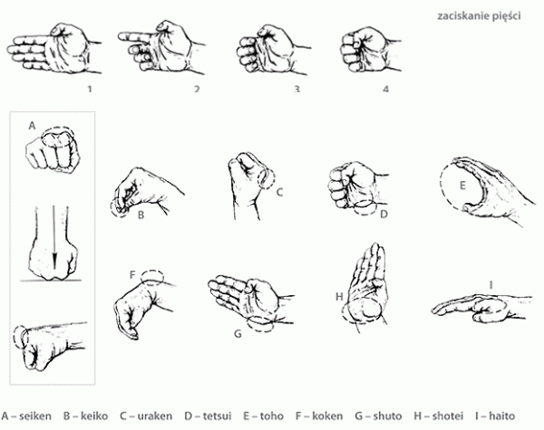 Słowniczek PODSTAWOWE POJĘCIA I TERMINY Słownik wyrazów stosowanych w karate: Strefa:Jodan – głowa, szyjaChudan – tułówGedan – poniżej pasa KierunkiMae – w przódUshiro – w tyłYoko – w bokAge – w góręOroshi – w dółSoto – z zewnątrzUchi – z wewnątrzMawashi – okrężnie Strona:Hidari – w lewoMigi – w prawo Liczebniki Sinojapońskie1 ICHI2 NI3 SAN4 SHI (YON) wym. Si5 GO6 ROKU7 SHICHI ( wym. SICI)8 HACHI9 KU (KYU)10 JU (wym. DZIU)11 ju ichi 12 ju ni 13 ju san 14…